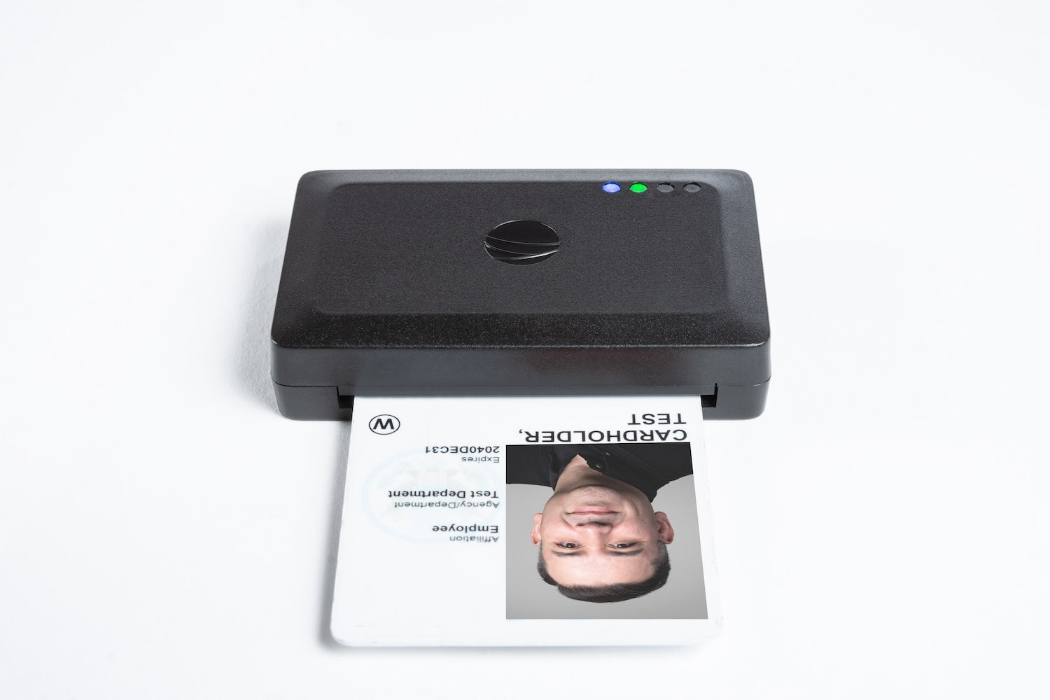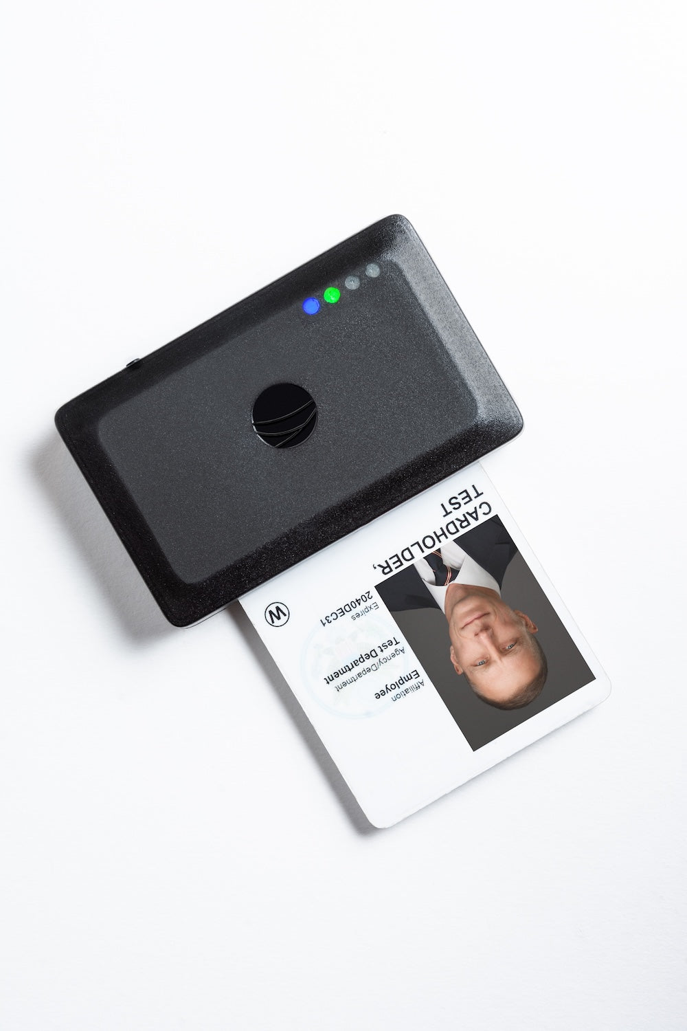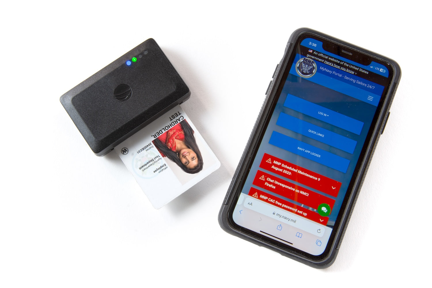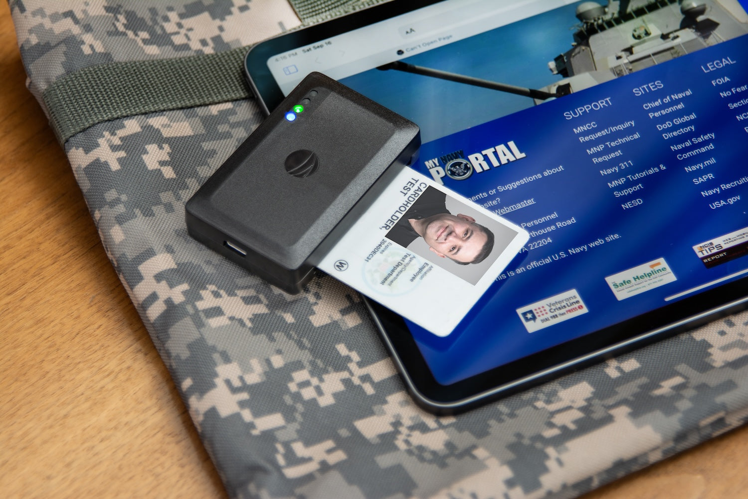 Smart Card Utility Wireless Mobile Reader enables your iPhone, iPad, and Mac to authenticate to apps and websites using your government-issued CAC or Smart Card. Meet with Microsoft Teams, check your email, access secure websites, and much more. Designed from the ground up and made in the USA, the Smart Card Utility Wireless Mobile Reader lets you leave your laptop behind and get your work done anywhere.